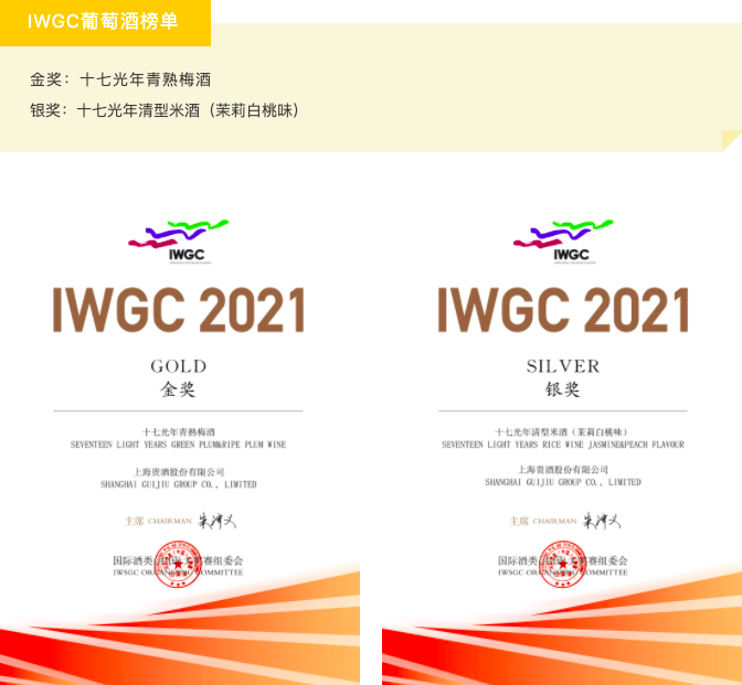 美好生活,果酒续电。十七光年精选东北五常圆糯米,独创90天控温发酵专利技术,混合果汁轻发酵,0添加纯天然,带来淡淡酒香。青梅味果酒酸甜适口,回味深远,清熟梅酒“梅”不胜收;花香茶香果香酒香层叠交织,茉莉白桃“桃”你喜欢。此次,十七光年清熟梅酒和十七光年清型米酒(茉莉白桃味)分别斩获大奖赛IWGC葡萄酒榜单的金奖和银奖,再次印证十七光年在市场及消费者中不可替代的品质和地位。